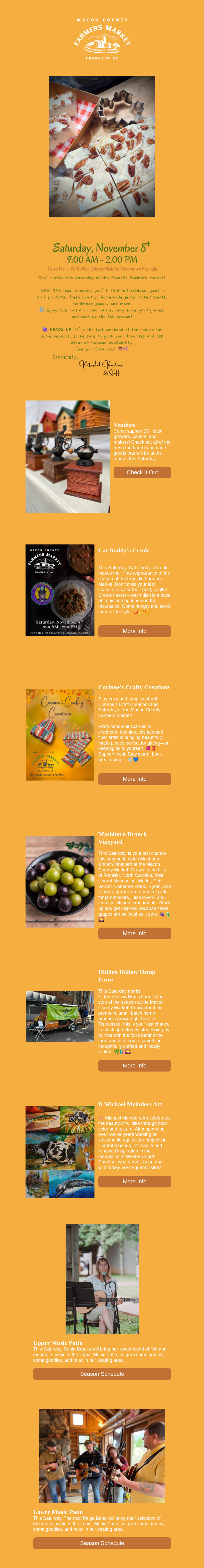 The writing style was clear, friendly, and community-focused. I aimed to keep it approachable without being overly promotional, highlighting vendors and events in a way that felt personal and local rather than sales-driven. Copy was kept concise and skimmable, knowing most readers would be opening the newsletter quickly on their phones.